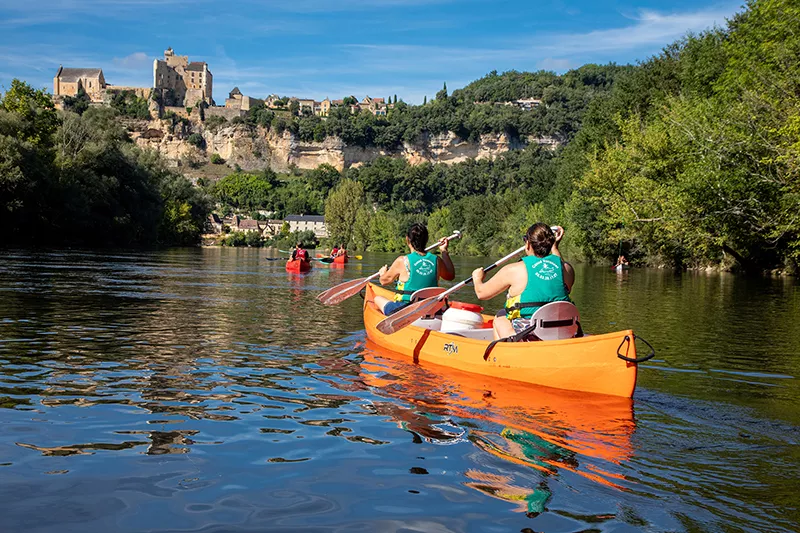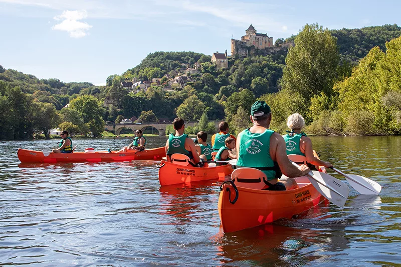 Un des plus beaux parcours pour apprécier les paysages et les châteaux du Périgord Noir : le cingle de Montfort et son château dressé sur son promontoire, le village de Vitrac, Cénac, vue sur la bastide de Domme, les Falaises des Pendoilles, le village de la Roque Gageac (construit au flanc de la falaise, classé parmi les plus beaux villages de France avec le fort troglodyte) le château de la Malartrie, les Jardins de Marqueyssac, le château de Castelnaud, le château de Fayrac, le château de Beynac et le château des Milandes.